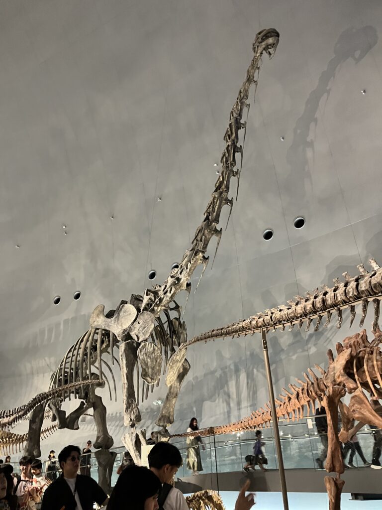 館内には50体もの恐竜骨格をはじめ、千数百点もの標本、大型復元ジオラマや迫力ある映像展示などがあり、そのスケールの大きさに圧倒されました。やはり、いくつになっても大きなものを見ると心がワクワクしますね。